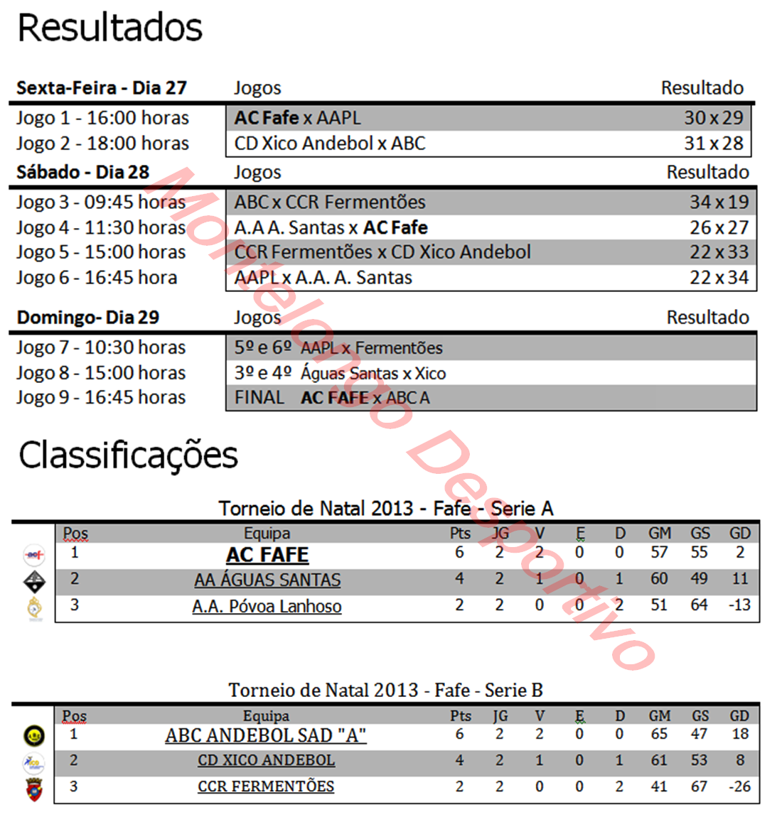 1º e 2º - AC Fafe : ABC A 30-28