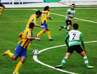 36' - Canto para a formação transmontana com Fábio a cabecear ao lado da baliza de Pedro Freitas.